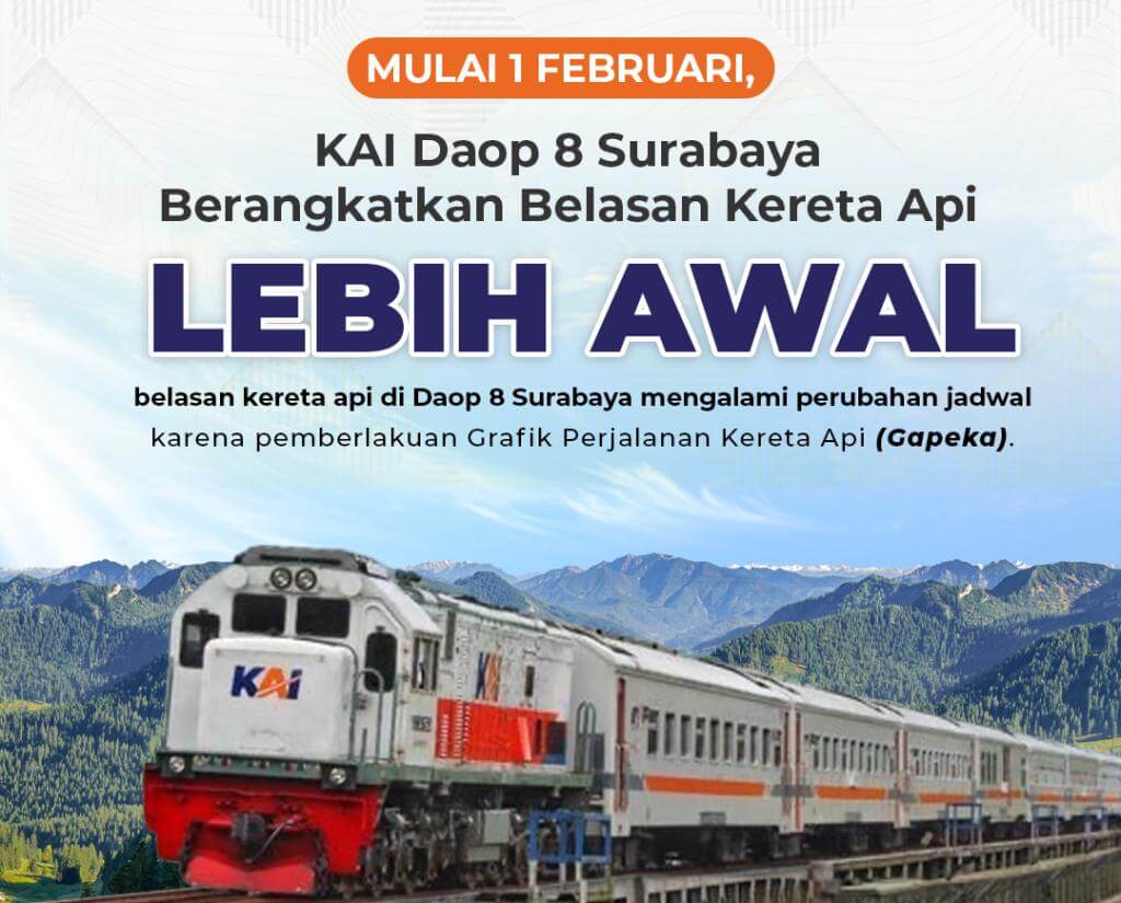 Manajer Humas KAI Daop 8 Surabaya, dalam keterangannya, mengimbau masyarakat untuk selalu memeriksa jadwal terbaru melalui aplikasi KAI Access, situs resmi KAI, atau langsung ke loket stasiun.