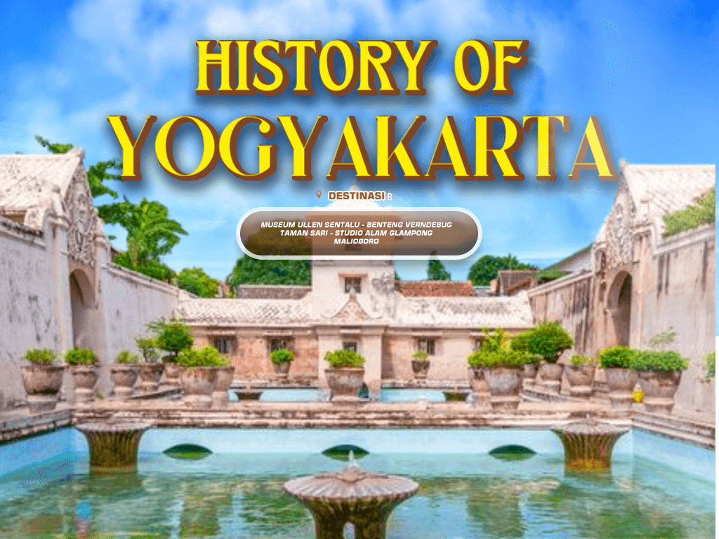"HISTORY OF YOGYAKARTA" mengajak Anda dalam perjalanan mendalam menelusuri jejak sejarah dan budaya yang kaya di jantung Pulau Jawa. Mulai dari keanggunan Museum Ullen Sentalu yang menyimpan kisah bangsawan Jawa, dilanjutkan dengan kokohnya Benteng Vredeburg yang menjadi saksi bisu perjuangan, hingga keindahan Taman Sari yang mempesona dengan arsitektur kuno. Perjalanan ini juga membawa Anda ke Studio Alam Gamplong, lokasi syuting film-film sejarah yang ikonik, sebelum mengakhiri hari dengan suasana meriah Malioboro yang tak pernah sepi.