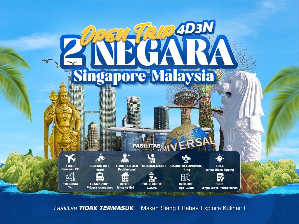 Liburan ke 2 negara SINGAPORE & MALAYSIA dengan durasi kegiatan 4 Hari 3 Malam, special inap 1 Malam di SINGAPORE sehingga lebih puas untuk Explore di Singapore,